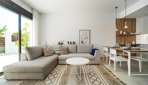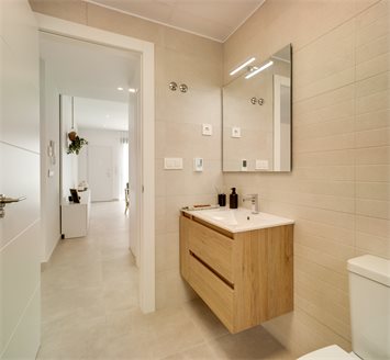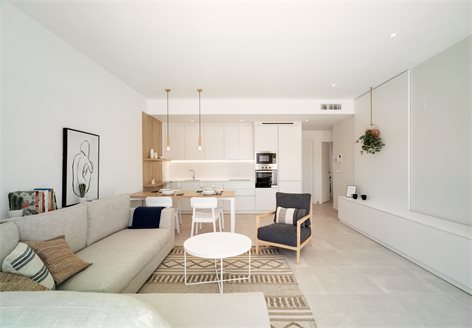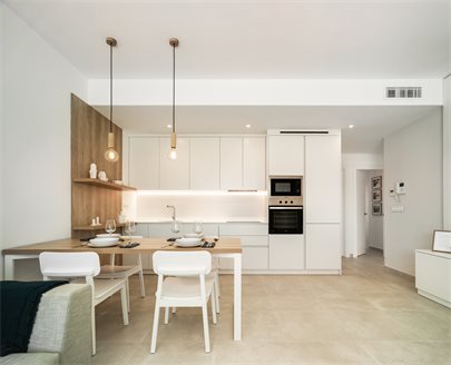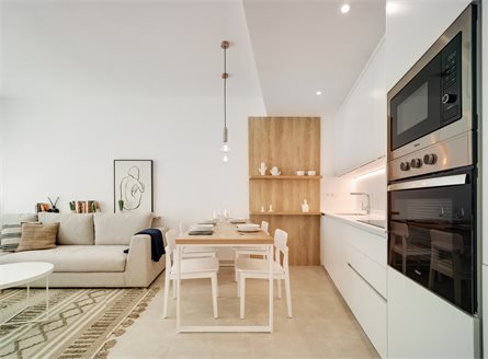 The properties have the option of 2-3 bedrooms with fitted wardrobes, 2 bathrooms with shower and underfloor heating (one of them being ensuite), a bright and spacious living-dining room, open plan kitchen with top and bottom units, quartz worktop and fully equipped. Also included are LED lights in the living-dining room, kitchen and bathrooms.
