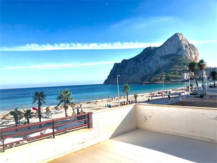 Front apartment with open views of the sea, towards the beach and the famous Peñón de Ifach that is a symbol of the Costa Blanca in the province of Alicante.