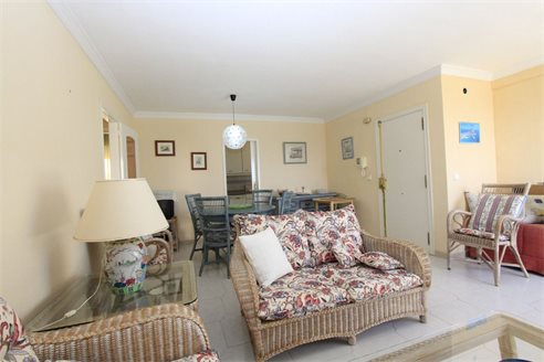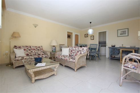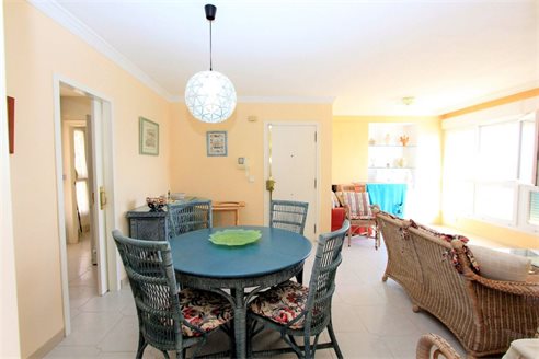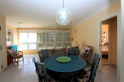 The apartment of 65,40m2 consists of a spacious living-dining room with a large double-glazing window that overlooks the beach and promenade area, 2 bedrooms (with fitted wardrobes) and a full bathroom (with bathtub). Separated from the living room by a sliding door there is a large kitchen fully equipped with appliances (oven, hob, extractor fan and dishwasher, fridge).