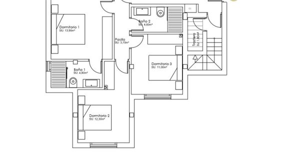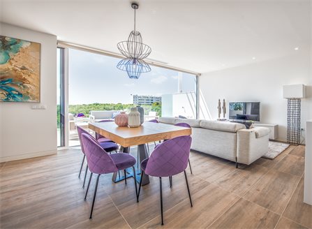 Penthouses on the third floor with three bedrooms and two bathrooms, one bedroom with its own bathroom, with a spacious area (living / dining / kitchen) - of 40.8 m2, from the living room there is access to a terrace (28.5 m2). On the roof there is a solarium with a Jacuzzi - area of 98 m2. Price: € 490,000.