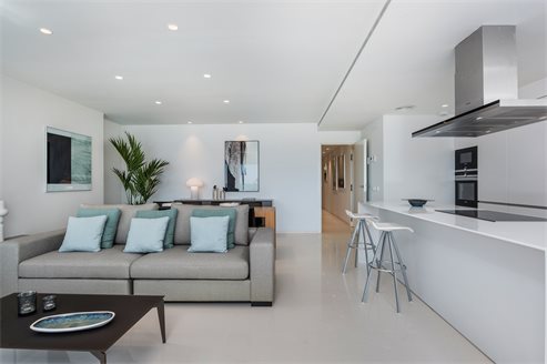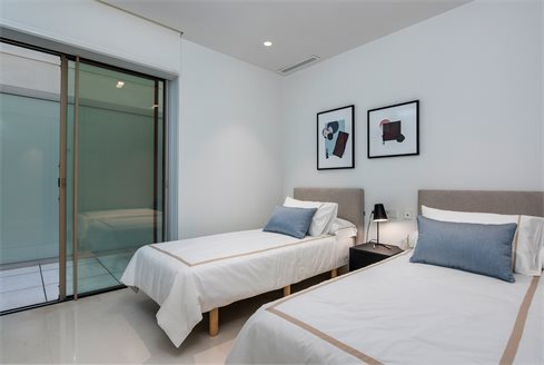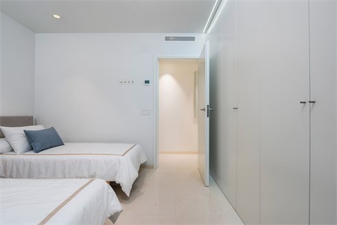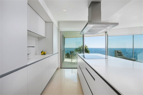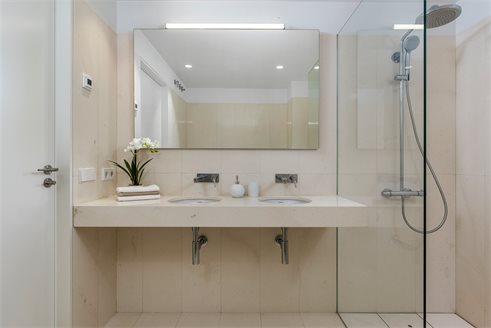 The apartment has 4 bedrooms, 2 bathrooms, area 182 m2, terraces 12,17 + 10,39 sq.m. It offers panoramic sea views. Garage accessible by elevator; household appliances: large two-door refrigerator, induction hob, microwave, oven, extractor hood, dishwasher (washing machine not included); osmosis of drinking water, underfloor heating in bathrooms; air conditioning in a separate duct in each room. Descaling system throughout the building. 2 video intercoms in each apartment.