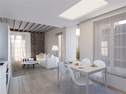 861,40 square metres apartment complex in the very centre of Málaga, in its Historical Centre. The building is configured by two residential buildings: the one located in number 7 could be a building from the late XVIII century, while the one located in number 9 is from the Nineteenth century. The complex is located in an exceptionally quiet area, of a relaxed atmosphere, but close to the bustle of the city at the same time. All the apartments have a modern design, respecting the traditional elements of the existing building. They are bright, with high ceilings which provide a unique feeling of spaciousness, luxury and elegance. Choose the apartment you like most; all of them have natural light through facade or patio. The materials and finishes are from the most recognised brands in the sector and both the architects and the constructors have an excellent reputation for the high quality of their work and their attention to details. The apartment finishes accomplish the higher standards even in their basic version; if you want to customize your home to suit your lifestyle, we offer a series of very interesting options and possibilities.