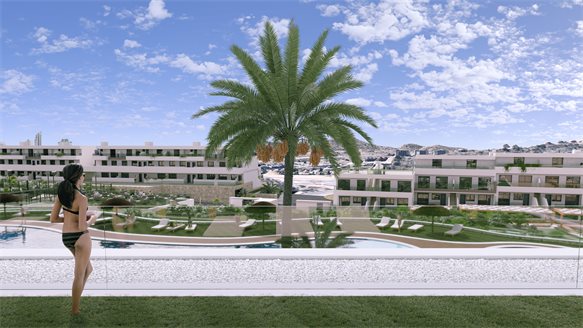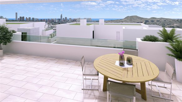 This project is a group of houses on two levels: apartments with large bright terraces and villas on their own plots. The complex is located next to Avenue de America, in the best area of the north of the Costa Blanca. Picturesque views, modern design, quality of construction have created in this project a unique space for life on the Mediterranean Sea. The residence has spacious common areas with pools, a children's playground, paddle tennis courts, a gym, locker rooms. Nearby is the Asía Gardens Hotel, golf courses, Villa Aitana Hotel, Terra Mitica Theme Park. The residential complex is located near the AP-7 motorway. Just a few minutes away is the commercial area of the region, as well as all the services of the most powerful tourist center of the Costa Blanca.