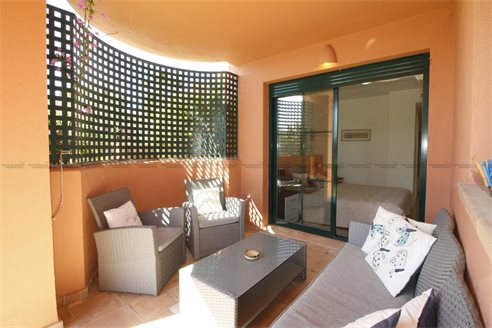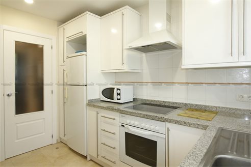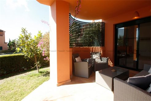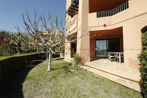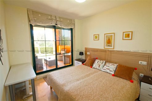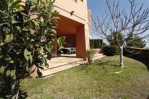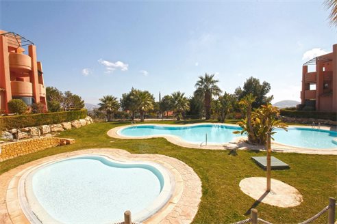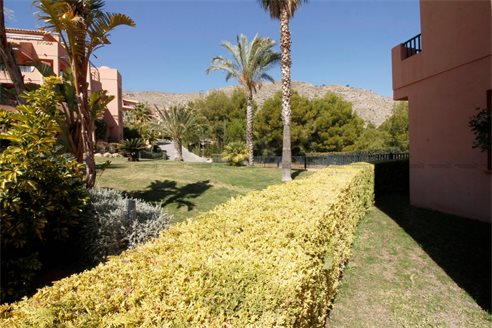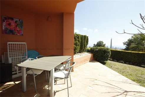 VirtoProperty offers for sale this fantastic apartment based on the ground floor in a private gated complex in Sierra Cortina, with peaceful views of the garden, the mountain and the skyline of Benidorm.. The complex consists of low-rise modern buildings with enough space between them to assure privacy of the owners, with great open-air pool for adults, a shallow-water pool for kids and wide green areas which are looked after by the concierge throughout the year.. The apartment is semi-new as it has been used very little, and is distributed in 2 double bedrooms with built-in wardrobes, 2 bathrooms (one of them is en-suite to the master bedroom), a separate fitted and fully equipped kitchen with utility room, and a lovely living/dining area offering access to a large sunny terrace and your own garden with beautiful views over the area. Part of the terrace is in the shade and is perfect for chilling during hot summer days and can also be accessed from the master bedroom. The property is equipped with integrated air conditioning and comes with its own parking space and storage room in the underground parking lot.. Sierra Cortina is an exclusive residential complex just outside Benidorm, with entry control and 24h security, just a few minutes’ drive away from the shopping centre, golf course, theme parks and wonderful beaches of Benidorm or Villajoyosa. .