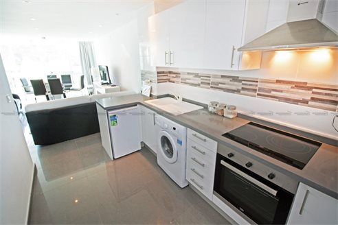 VirtoProperty is pleased to offer for sale this excellent, fully renovated 3-bedroom apartment based in a nice residential complex in the Rincon de Loix area of Benidorm. . The property features new sanitary ware, electric wiring, doors, and PVC climate-control windows. The living/ dining area has been joined with the glazed balcony with floor-to-ceiling windows from where you can enjoy sea and mountain views. The open-plan kitchen is fitted and fully equipped with modern appliances. The bathroom is equipped with a bath. . The residential complex is nice and recently renovated, it benefits from a well-kept garden, a big parking lot, an open-air pool and a basketball court. The outdoor territory, the entrances and the lifts are equipped with video surveillance cameras. The apartment block is conveniently located close to a supermarket, a bus stop, various bars and restaurants, a pharmacy, etc. The famous Levante beach is just 800 m away (at an 8-min walking distance).