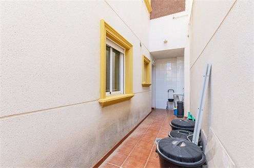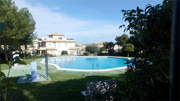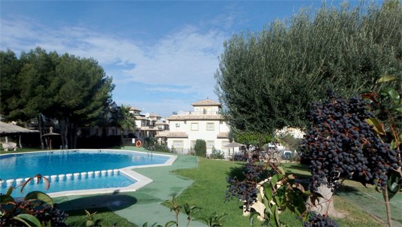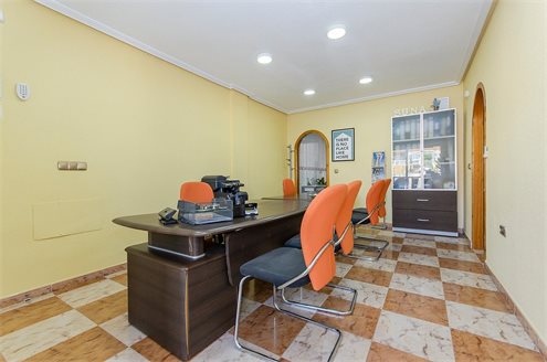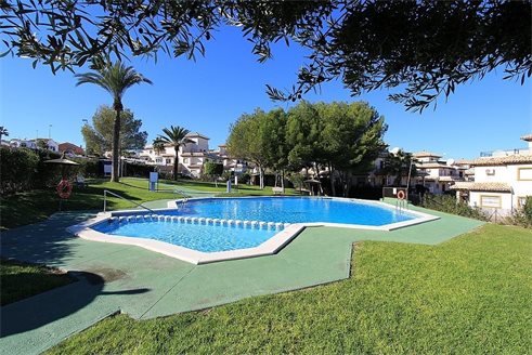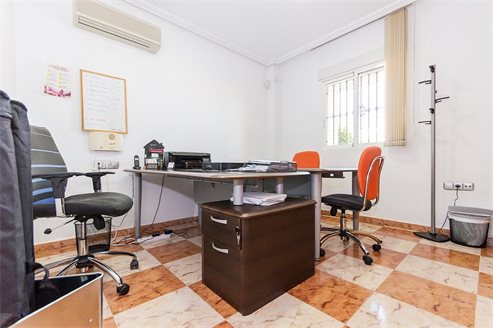 Ground floor apartment in a traditional Mediterranean style, with a large corner garden of 134 m2 with palm trees, large olive trees, various ficus trees and other gardening elements.~ ~ Orientation: West.~ ~ Currently the house is finished with office furniture (negotiable, not included in the price).~ Luminous sign installed on the facade + billboard in the garden with great visibility from the street and highway.~ ~ The house is distributed in:~ 2 bedrooms with large built-in wardrobes, 1 full bathroom, large living room, independent kitchen with large patio, terrace with porch and corner plot with garden.~ Everything outdoors with lots of natural lighting.~ AACC installed included.~ ~ Located in the "Pinada Golf 2" Urbanization with a large communal pool, 3 green areas and a petanque court.~ 10 minutes walking to Villamartín Golf and Villamartín Plaza, the heart of the area.~ This home is ideal to live all year round, as a vacation apartment or as an office for your business.~ Great potential for rentals all year round.~ A unique opportunity!