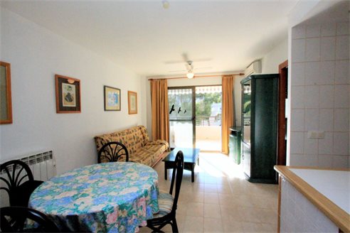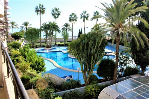On the first line of the Levante beach in the well-known town of Calpe in the province of Alicante we find this prestigious and well-known building where this apartment for sale is located with an area of 57 m2. It consists of entrance, bathroom, 1 bedroom, living room, kitchen and terrace of 11 m2 with sea views and views of the garden and pool.
