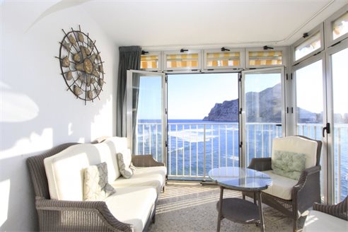First line apartment of 85 m2, with 2 bedrooms, both with fitted wardrobes, a bathroom, independent kitchen with gallery, a large living room with the best views of all of Calpe to the Fossa beach, the sea and the Rock of “Peñon de Ifach”.
