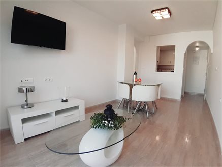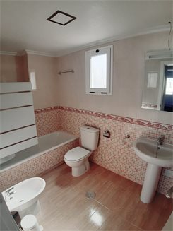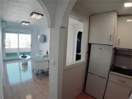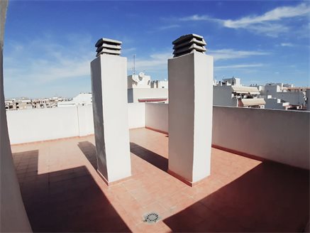 The 43m2 house consists of 1 bedroom, 1 full bathroom, independent kitchen, large living-dining room, terrace of 14m2 and a private solarium of 40m² with access by community stairs. It could be accessed directly by making a staircase (spiral) on the terrace. Located in the center of Torrevieja a few meters from the beach and the large shopping center of LAS HABANERAS. The apartment is fully furnished with furniture, appliances and even with everything you need for rent, dishes, linen, etc. 40Km from Alicante and Murcia Airport, 15Km from golf courses and only 600m from the beach.
