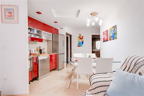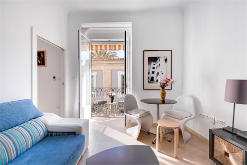 It has 110 m2 built and is distributed in two cozy rooms, in one of them we find the living-dining room with access to a balcony with views of the main street, a furnished and equipped open-plan kitchen which enjoys great light, two bedrooms, one of they huge (both with wardrobes), and a full bathroom. In the other room there is also the living-dining room with access to a balcony with views of the street, a furnished and equipped open-plan kitchen, 1 bedroom with a wardrobe and a complete bathroom.