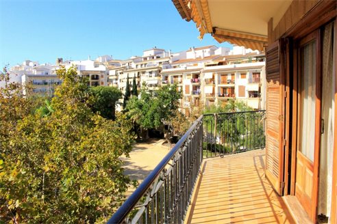 The apartment consists of 121.80m2 distributed in large entrance hall, 2 double bedrooms, 1 bedroom with bathroom, 1 family bathroom, kitchen with utility room, living room with a large balcony from where one side has some sea views towards the port and the other side is oriented with views towards large park with trees. From the two single bedrooms you can also access a large balcony overlooking the park and receive the sun throughout the day.