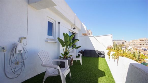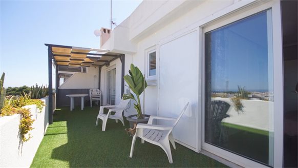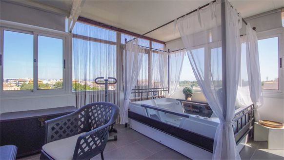 Penthouse completely renovated with 2 large bedrooms and fitted wardrobes, 1 bathroom with shower, an open and equipped kitchen and a cozy terrace with open views to the beach. It also has 2 impressive and very bright living rooms, one of them with a jacuzzi ... what could be better than having a glass of champagne with your partner while you are in the jacuzzi watching the beach ?!Only a few meters from the property is the communal pool with a green area to relax and lying in teh sun.. . The property is located in an environment surrounded by restaurants, bars, supermarkets, medical centers, shopping centers, parks and only 800 meters from one of the best beaches in the area. The building also has an elevator.. . Do not miss this great opportunity to buy this amazing penthouse!