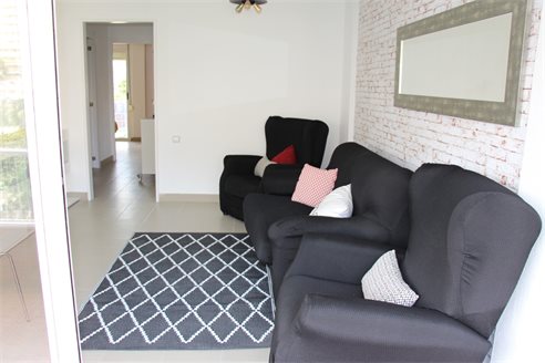 The 95 m2 house is located in a living-dining room with access to a large outdoor terrace with unobstructed views of the pool and green areas, Apartment with a furnished and equipped kitchen, as well as a gallery, 2 double bedrooms, a bathroom and a toilet. In addition, recent renovations have been carried out: the plumbing and electrics have been replaced, the floor is porcelain stoneware, the joinery with white painted doors and aluminum windows with air-conditioned glass.