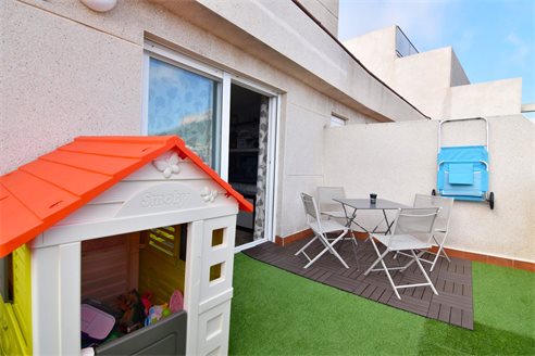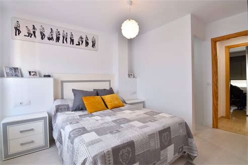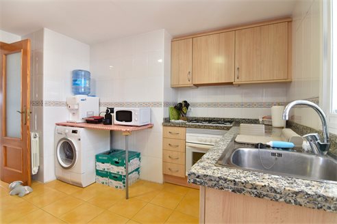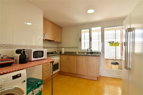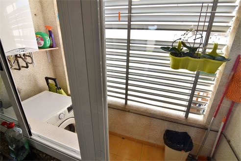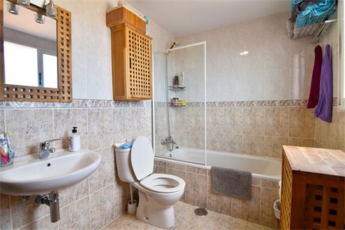 A 3 bedroom penthouse in Calpe, Costa Blanca, with mountain views, just 1 km from the beach. This 95 sqm penthouse is located on the sixth floor of a building with a lift, just 1 km from Arenal Bol beach, 300 m from restaurants, 350 m from Mercadona supermarket, 1.8 km from Lidl and 2.7 km from Aldi. Alicante airport is 77 km away. The property is distributed in 1 living-dining room with direct access to an open terrace with mountain views, 1 fully equipped independent kitchen with access to 1 laundry, 3 bedrooms with fitted wardrobes and 2 bathrooms, one of them en-suite with bath and the second one with shower, sink and w.c. Also, it has an air conditioning, gas central heating, double-glazed windows and shutters.