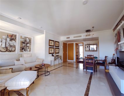 The penthouse area is 122 m2. There is a spacious living-dining room, very bright due to its southeast orientation, from the living room there is an exit to an open terrace of 15 m2 with a beautiful view of the sea and the urbanization. The solarium area is about 100 m2, here you can relax while admiring the beautiful view of the sea and the city, and spend very pleasant moments with family and friends while enjoying a barbecue. The kitchen is furnished and equipped with appliances, there is a gallery. In the private area there are 3 spacious bedrooms (the main one with a renovated bathroom, dressing room and an open terrace, also overlooking the sea), in the hallway there is a large built-in wardrobe for any use, 1 fully equipped bathroom with a shower. Among the finishes: marble floors, air conditioning hot / cold through air ducts in all rooms.