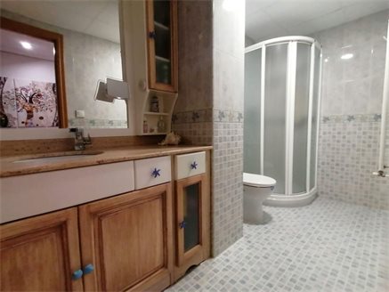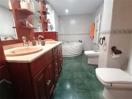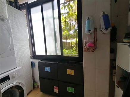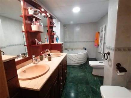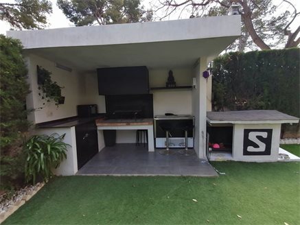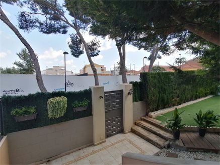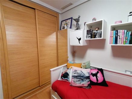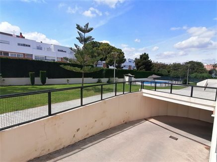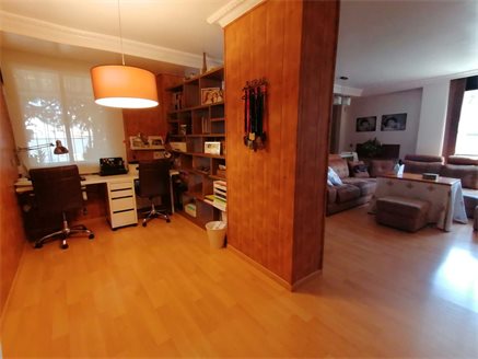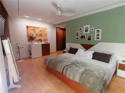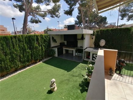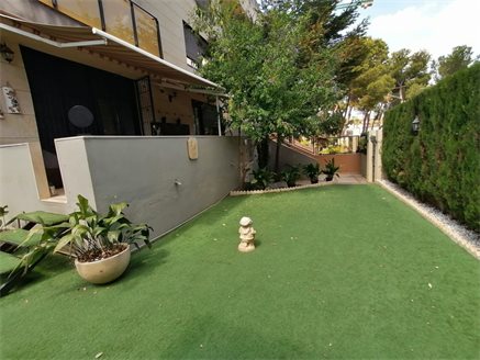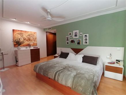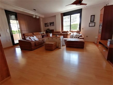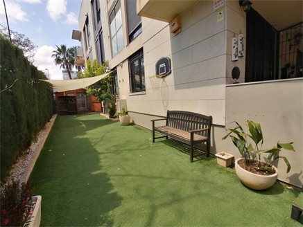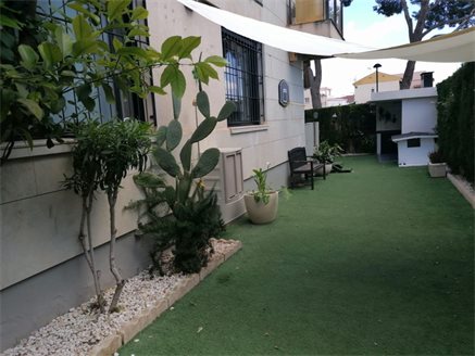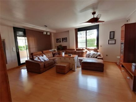 Housing, in a private urbanization with a communal garden and pool, totally exterior, east facing and on one floor, with a garage and separate entrance. Super comfortable. Spectacular and very well preserved, with many improvements, last in 2019. Smooth walls, beech doors, porcelain and parquet floors, automatic irrigation, double glazed windows, electric shutters, bars on all windows and terrace stairs, air conditioning by ducts throughout the house, heating by radiators, alarm and closed circuit cameras. It is distributed in three bedrooms, two of which are doubles and both with a complete bathroom en suite, one with a shower and the other with a hydromassage bathtub, all bedrooms have built-in wardrobes, being a total of six and a courtesy bathroom, in this occasion, with a shower tray, it also has a large kitchen, where you can eat, with access to the gallery, which has capacity for a washing machine and dryer. The fourth bedroom is currently the office-library, which is fully integrated, although maintaining its space and privacy, in the living room from which we have access to the terrace and the private garden, with an independent entrance, in which we find a large fully equipped paella pan. Includes parking space in the price!