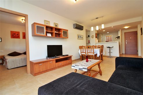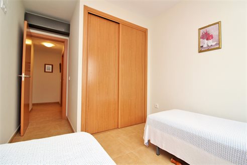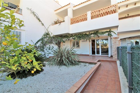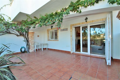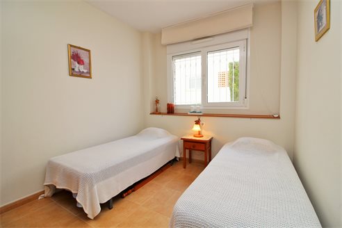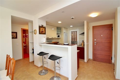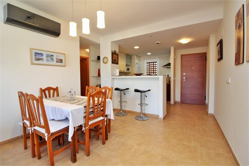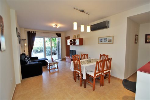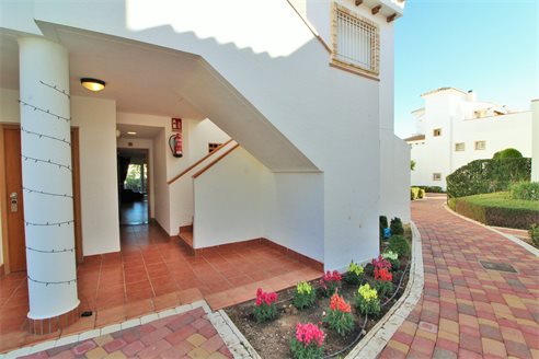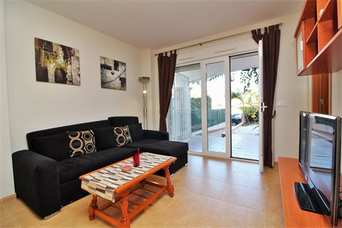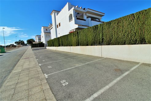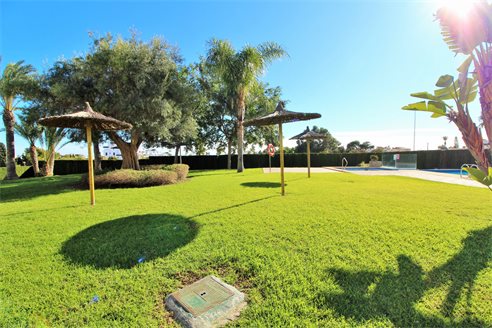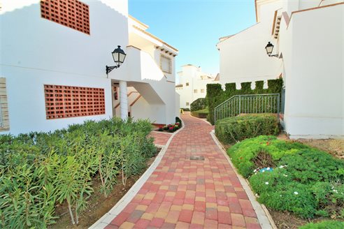 Immaculate 2 bedroom ground floor apartment in the beautiful urbanisation located in a highly desirable area Los Dolses, within walking distance to amenities and the La Zenia Boulevard shopping mall. Built in 2011, the apartment comprises of a large front garden with covered porch area, living/dining room with open American style kitchen plus utility room; an L shape hallway from the living area leads towards a family bathroom, storage room and twin bedroom. The master bedroom is accessible via the living room, and has its own en-suite shower room. The apartment has had very little use and is in great condition. The urbanisation has lovely Spanish village theme, with beautiful pathways inside the community and landscaped garden areas with a stunning pool area with lots of space for sun bathing. Sold furnished with air-conditioning in both bedrooms and the living room. The apartment benefits from an off-road parking space next to the main entrance of the urbanisation. Within 500 metres to the Los Dolses commerical centre which has many bars, restaurants, a supermaket and bank. The Zenia Boulevard shopping mall is just 1.3km away, less than a 20 minute walk and the beach of La Zenia is 2.5km away. Viewings highly advised!