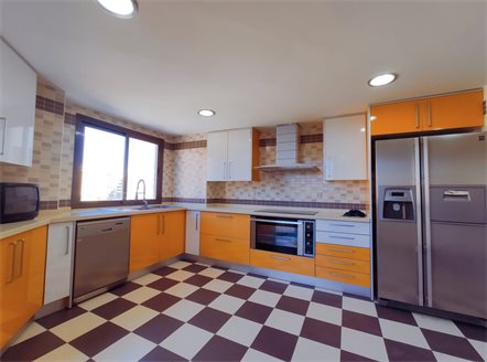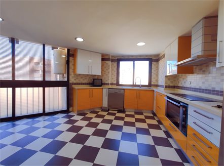 The house has 450m2 of constructed area and 245m2 useful (it is the union of 2 penthouses, leaving a spacious home). It is distributed in a spacious living room and dining room with fireplace and exit to a terrace covered with glass, a staircase that leads to a large solarium terrace of approximately 250m2 where you can enjoy excellent views of the sea and the port, as well as the warm climate of Alicante . Large kitchen furnished and equipped with space for dining room plus gallery. In the intimate area we have 4 bedrooms with built-in wardrobes (2 with bathroom en suite and dressing room), 1 full bathrooms. Additionally it has another furnished and equipped kitchen. Among the changes that were made to the house we have: Motorized blinds, marble floors, lacquered doors, large closets, etc.