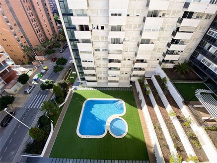 Bright and spacious apartment in good condition with south orientation and a spacious outdoor terrace overlooking the pool and city. Located on the 6th floor in a modern building adapted for people with disabilities. In the common area, in addition to the pool (for children and adults), there is also a garden, a playground and a tennis court. The apartment is located close to the sea and several beaches in an area with a very well-developed infrastructure: bars, restaurants, shopping centers, walking routes and green areas, the Russian Orthodox Church - everything is within walking distance.