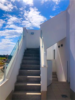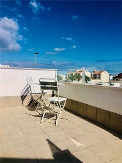 In the penthouse models, a staircase leads you to the top floor area with large tiled private terrace, with entrance door to the property. Like the ground floor models a generous open plan lounge/ dining area with kitchen, 2 bedrooms to the rear (master with en-suite). Access is gained to the private roof solarium from the front.