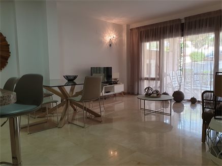 3 apartments for sale, ground floor, have 2 bedrooms, 2 bathrooms, dressing room, kitchen equipped with appliances and washing machine, terrace with access to the pool, its own parking space, storage room and garden. There is air conditioning in all 3 apartments.