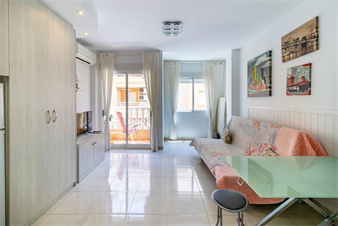 Spacious, bright and modern studio apartment located in the centre of Torrevieja at just a few metres from all the amenities and close to the Playa del Cura beach.