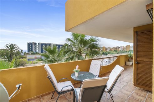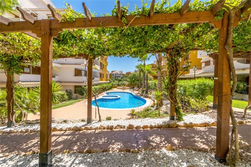 Spacious apartment located in a privilege area of Punta Prima, Torrevieja. The property consist of spacious terrace of 25m2 with open views and east facing. Inside the property we will find a spacious dining-living room, independent kitchen, 2 bedrooms and 2 bathrooms (one of which en-suite). The apartment is in excellent condition and includes furniture. The property has underground parking place and storage room.