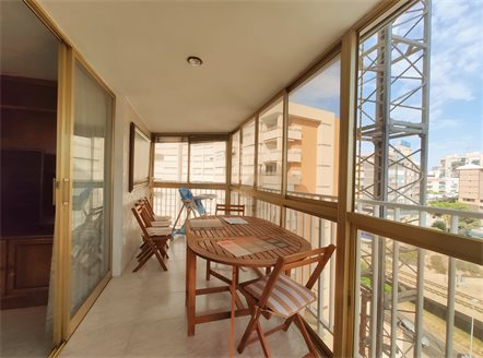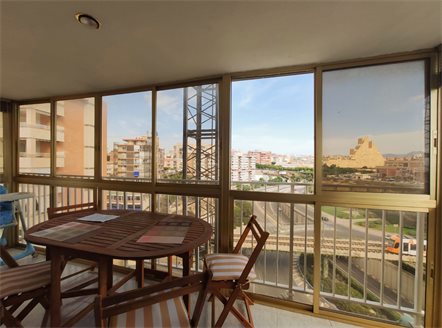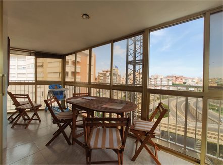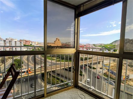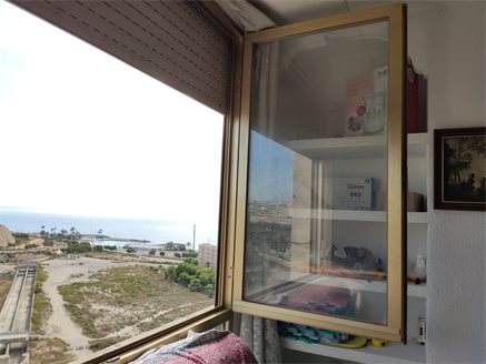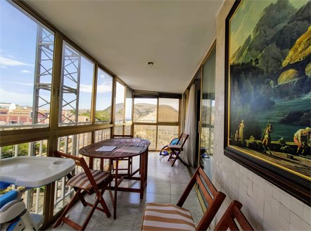 It consists of 80m2 and is distributed in a very bright living-dining room with access to a private glazed terrace and wonderful views, where you can enjoy the good weather that Alicante gives us both in summer and winter, independent kitchen furnished and equipped plus gallery, courtesy toilet , 2 double bedrooms with fitted wardrobes (main one with sea views), 1 complete bathroom with bathtub. Among the finishes of the house we have: Stoneware floors, aluminum exterior closings, security door, etc. The building has access for people with reduced mobility, currently the building is under renovation (with the spill already paid).