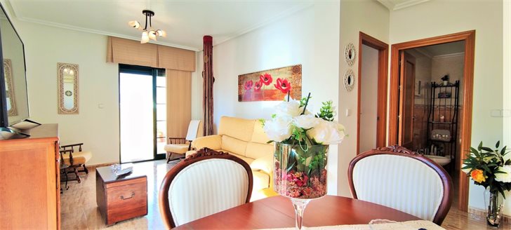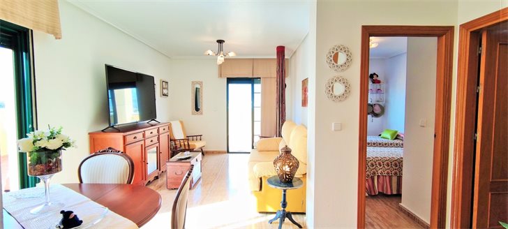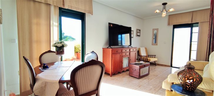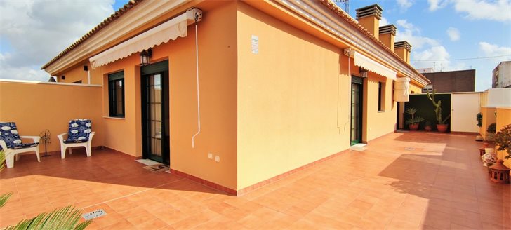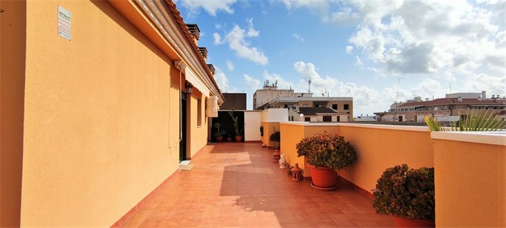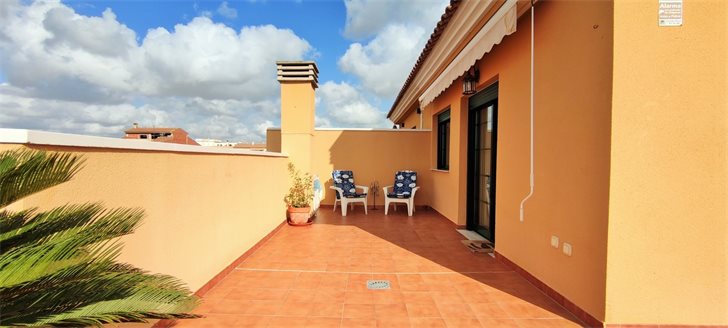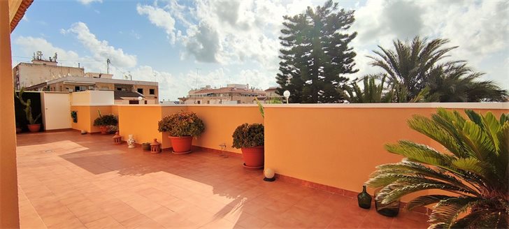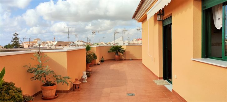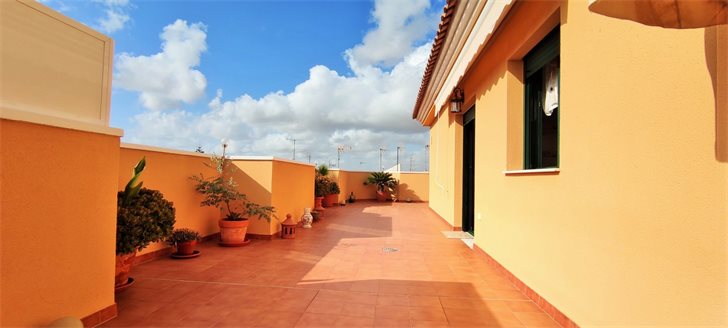 Penthouse apartment with very large L-shaped roof terrace in the center of lovely Pilar de la Horadada, now for sale at an unbeatable price.