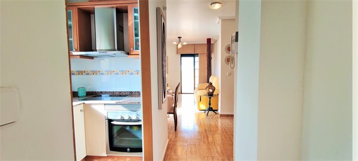 The apartment is located on the 2nd floor (elevator available) and consists of a spacious living room with separate kitchen, 2 bedrooms with closets and a bathroom. Direct access from the living room and one of the bedrooms to the 70 m2 large terrace with open views and sun all day. The property was built in 2005 and has been kept very carefully with the current owner and is for sale furnished and equipped. A parking space and a storage room on the basement level are included in the price.
