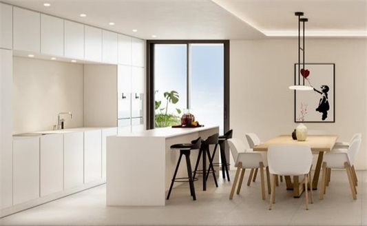 There are options for apartments with 2 and 3 bedrooms and 2 bathrooms, penthouses with large terraces or lower floors with a private garden. Also available are apartments on the middle floors with private terraces, which offer beautiful views of the sea and the well-groomed area of the residential complex.