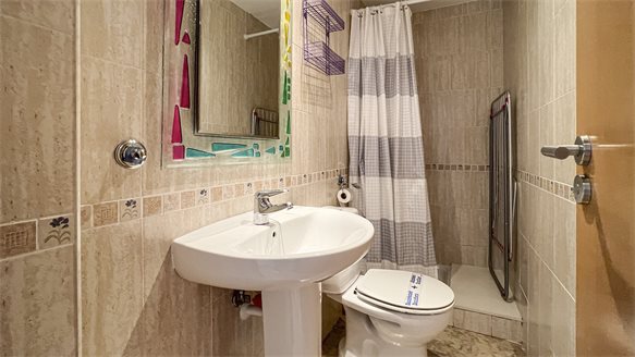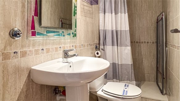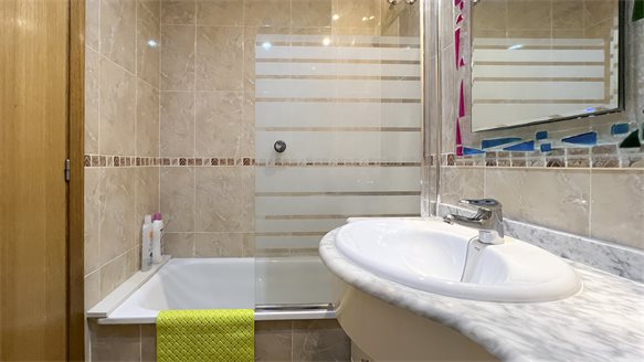 Very nice, clean and bright apartment near the sea and the city. It has a large living room with a dining area and access to an open terrace overlooking the pool and the garden. The apartment has 2 spacious bedrooms with fitted wardrobes, one with a private bathroom with a bathtub. The second private bathroom with shower can also be used as a guest toilet. Fully equipped separate kitchen with washing machine and aqua boiler.