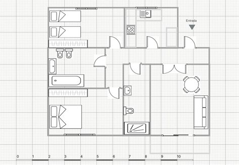 Apartment with 2 bedrooms and 2 bathrooms on the first line.