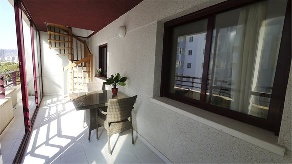 Superb duplex penthouse with a total area of 125 square metres located on the sixth floor of the building. It is divided into two floors. The first floor consists of a fully furnished bedroom with fitted wardrobes, an equipped kitchen and a living / dining room with direct access to the covered terrace and to the upper level of the apartment. On the second floor there is a diaphanous bedroom, a separate bathroom and a 41 m2 outdoor terrace. This large terrace offers incomparable views of Calpe, the sea and the mountains.