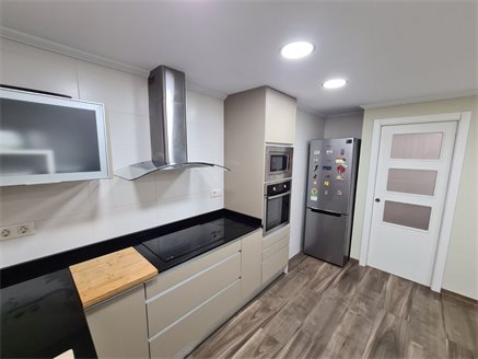 Excellent apartment in the center of Burriana, renovated and ready to move into. It has a spacious and bright living room with a small terrace with exterior views. Fully equipped and furnished kitchen, also includes gallery. 3 bedrooms with built-in wardrobes and 2 complete bathrooms. The house has an elevator and garage.