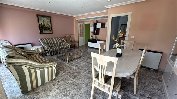 A bright living-dining room, ideal for family gatherings.