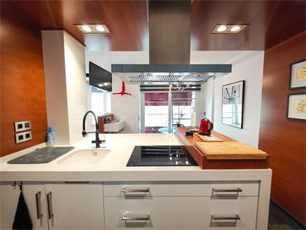 Exclusive luxury apartment with parking space for sale in the center of TorreviejaWe are pleased to present this exclusive luxury apartment in the center of Torrevieja. Located in a building with elevator, built in 2005. The apartment comes with a parking space and a storage room in the same building. This property has been fully renovated to a very high standard and made soundproof to avoid noise from the outside and the neighbours. This amazing apartment offers 2 bedrooms, one of them with an ensuite bathroom with marble tiles and a luxury itialian sink, which leads to a spacious walk in closet. There is also a good size guest toilet, an additional walk in closet which is currently being used as storage room, a spacious and very bright living room with a dining and reading corner, a high quality fully equipped kitchen with a big kitchen island equipped with lots of storage space and a small south facing terrace. The living room recieves a lot of natural light thanks to it’s big windows and south orientation. It’s sold furnished and equipped with with goods, except for personal items. The apartment comes with a lot of extras such as ducted airconditioning in the whole property, an alarm system, quality parquet, a security door, electric shutters, etc.