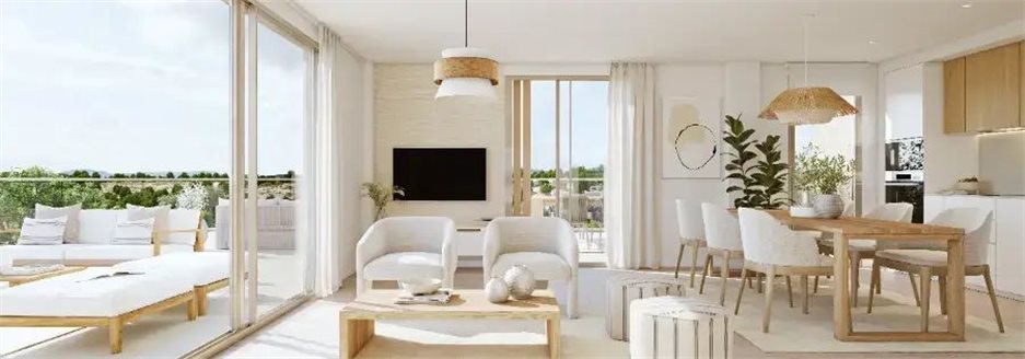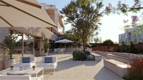 The property is a modern residential project consisting of five buildings with 20 apartments. The complex offers apartments with 2, 3 and 4 bedrooms, each with 2 bathrooms and an open plan kitchen connected to a spacious living room.