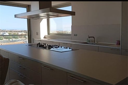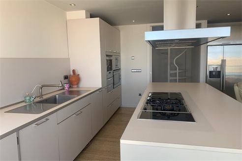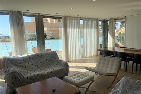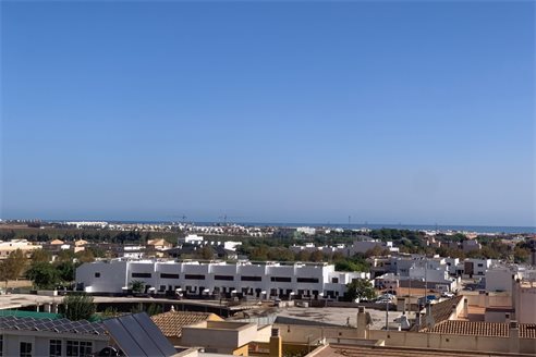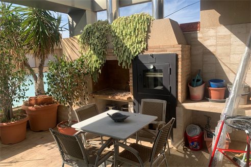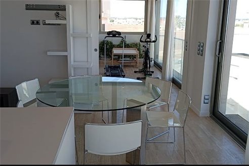 . This very impressive and unique luxury Penthouse Apartment, of some 250 m2, is located in a four-story high residential building, occupying the whole of the fourth floor in the urban center of Pilar de la Horadada, a few kilometers from the beaches and the Lo Romero golf course. The penthouse has three double size en-suite bedrooms, all with modern bathrooms, a 50 m2 living-dining room, a 40 m2 kitchen with an island, an office, two exterior terraces and one inner-winter garden including fully equipped Barbeque and grill . The materials and qualities are excellent throughout, with large floor-to-ceiling balcony windows on all facades which brings a supply of natural light, custom-made floor-to-ceiling sliding interior doors, travertine marble on floors and bathroom baseboards, Bulthaup brand modern German kitchen, Duravit brand sanitary appliances, solar thermal energy facility for hot water, a lighting system using high-efficiency LED spotlights, Air conditioning/heat inverter in all rooms plus motorized Velux windows with remote control. Home automation entertainment and comprehensive alarm system with presence detectors. In addition there is the potential of a space in the underground parking area.