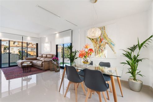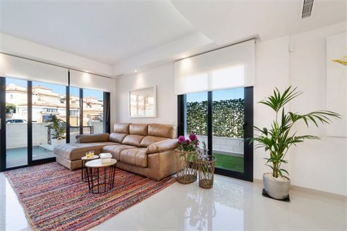 Living room, American kitchen, 3 bedrooms, 3 bathrooms, terrace, Solarium 20 m2. The total area of 99 m2. On a plot of 112 m2 there is a garden and a Parking space. The complex has a communal swimming pool.~ ~ Villamartin is a prestigious residential area with developed infrastructure, especially loved by Europeans. It is located 5 km from the coastline and is surrounded by Golf courses. There is much more greenery than on the coast, and a calm and measured rhythm of life attracts those who appreciate comfort and silence. Nearby is the Golf club Villamartin. The beach can be reached in a few minutes by car, as well as the Golf clubs of Campoamor and Las Ramblas. Thanks to schools, shopping centers, restaurants, pharmacies, bus stops nearby, this area is ideal for living all year round. In the vicinity is Zenia Boulevard – the largest shopping center of the province of Alicante.