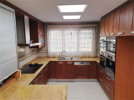 On the main floor there is a spacious living room with fireplace, exit to the terrace and with beautiful sea views. The furnished kitchen is equipped with laundry, there is a toilet. On the upper floor there are 4 bedrooms with terraces and sea views, two bedrooms with bathrooms and a dressing room (one with a jacuzzi and the other with a sauna), as well as 1 bathroom and a fully equipped kitchen. On the ground floor there are 2 guest rooms with a living room, a bathroom and one of the rooms also has a kitchen. In the basement there is a closed garage for four cars, pantries and a toilet.