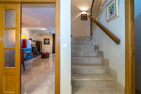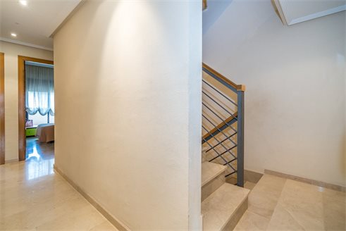 The townhouse consists of 4 floors plus a basement with a room, a pantry and a parking lot. Ground floor: kitchen, gallery, living room, toilet and terrace. First floor: 4 double bedrooms, 2 bathrooms and a terrace. Attic: a bathroom and 2 terraces. Heating with natural gas, radiators, air conditioning. All rooms have fitted wardrobes. The urbanization is very quiet, with totally of 10 townhouses, equipped with a playground, green areas and a swimming pool.