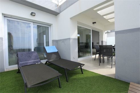 Outside you can relax in the communal pool (12x5) and a terrace with beautiful sea views.