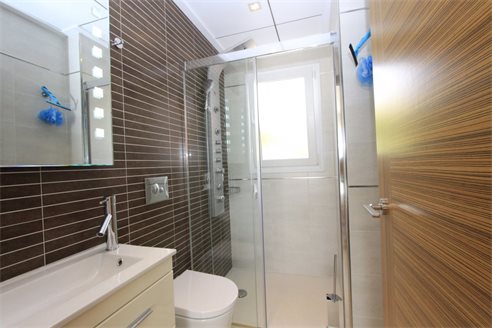On the ground floor we find an entrance, living room with access to the terrace and to the small private garden, fully equipped kitchen, laundry room, a double bedroom, a bathroom with shower, garage and internal stairs leading to the upper floor where there are 2 double bedrooms with two bathrooms with shower en suite and a large terrace with panoramic sea views.