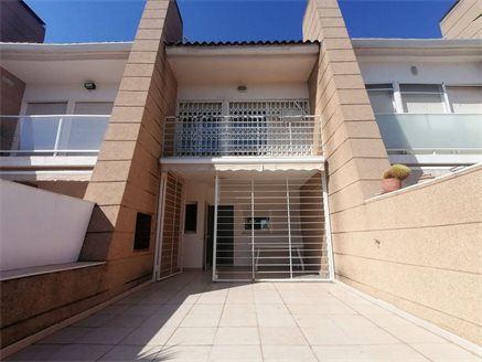 This townhouse is distributed over three floors plus an attic. Upon entering we find a spectacular terrace of about 20 meters, with a barbecue, which invites us to enter the house, where we find the living room with access to the garage where two cars enter, a courtesy toilet, a complete independent kitchen, furnished and with appliances and gallery with access to another of the terraces in this case of about 10 meters, on the next floor we find, three bedrooms (two of them double) and all with built-in wardrobes and access to the balcony, and a complete bathroom with bathtub and on the second and the last attic currently another double room, with access to the last of the terraces and storage room with built-in wardrobe.