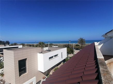 Impressive townhouse with sea views and at the foot of Corinto Beach, Canet de Berenguer (Sagunto- Valencia), a quiet beach, which has been repeatedly awarded the blue flag for the quality of the water and sand. perfect and little crowded place to enjoy a day of sun and bath. Just 20km from Valencia and 30km from Castellón. Canet has a bus line that connects the beach and the urban center with the Renfe station located in the municipality of Sagunto. With all the services at your disposal, supermarkets, shops of all kinds, health centers, schools, leisure areas and restaurants.