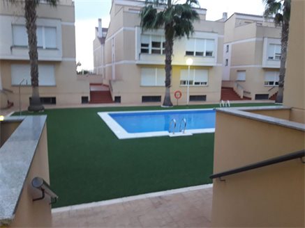 Terraced house for sale located on Científico Avel-li Corma de Moncofa avenue, Castellón. Spacious three-storey house is distributed on the first floor with a large living room with access to the main terrace and direct access from the avenue, a guest toilet and a furnished kitchen, with access to the pool and communal area of the private urbanization. On the second floor 3 bedrooms, two bathrooms, one of them ensuite and balcony; in the upper area a loft with a terrace. It has a garage in the basement with capacity for two vehicles. It has built-in wardrobes, wood finishes in soft tones, aluminum windows, well-equipped toilets, etc. The villa also has a swimming pool, integrated into an elegant, orderly and quiet community area. Close to the beach of Moncofar.