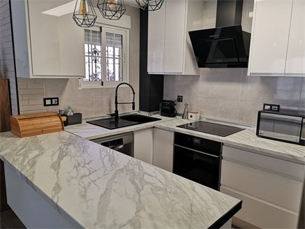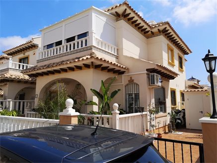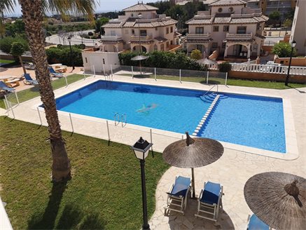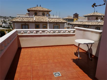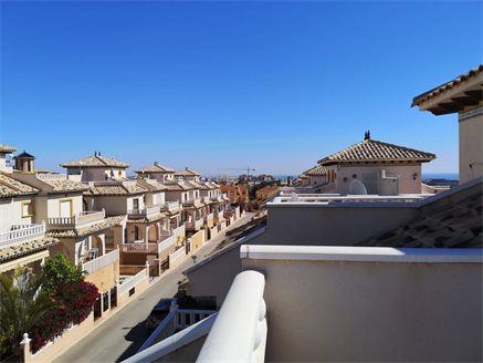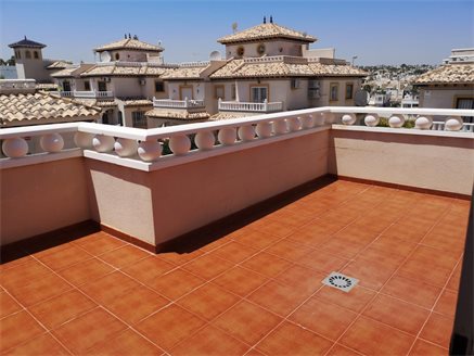 In one of the most prestigious areas of Orihuela Costa, in Lomas de Cabo Roig, we have this magnificent quad-type townhouse, where you can enjoy the tranquility that the area offers while having all kinds of services, such as restaurants , cafes, supermarkets, pharmacies .... The house has 2 double bedrooms, a small office, 2 bathrooms, a spacious living room, kitchen, large terrace with storage room and a solarium with 27 m2 where you can enjoy the magnificent views that the area offers with an average annual temperature of 20º. In addition, the residential offers a community pool and parking spaces.. For sports lovers, the house is very close to the Las Ramblas, Las Colinas, Campoamor and Villamartín golf courses and just 3 km you can access the best beaches of Orihuela Costa such as Campoamor, Mil Palmeras, Cabo Roig and La Zenia .