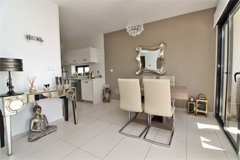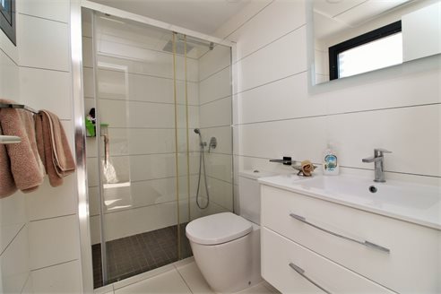 Built in 2017, this wonderful property is sold fully furnished and equipped with the ground floor comprising of an outside 45m2 terrace leading into the bright and open lounge/diner with open kitchen plus utility area, 1 bedroom and a shower room. Upstairs there are 2 bedrooms with fitted wardrobes and a shower room. Patio doors lead from the master bedroom and hallway to a 25m2 balcony with fantastic panoramic views. There is also a basement with large storage room leading directly to a private underground parking space.