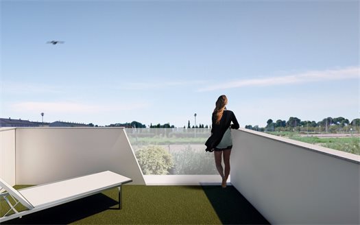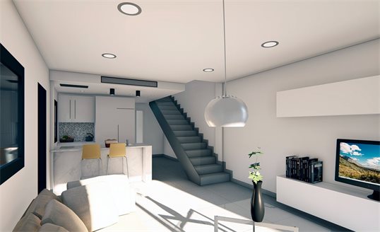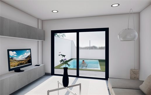 Fantastic semi-detached villa with private pool, with terrace and solarium area that allows you to enjoy all hours of sunshine, every day of the year.~ The house has 3 bedrooms and 3 full bathrooms. Designed on two levels with a contemporary style and an open living concept, which consists of a fitted kitchen with an island a living-dining room.~ Located in Santiago de la Ribera (Murcia), 800 meters from the Mar Menor beaches, surrounded by services, parks, sports facilities and several golf courses.~ Unbeatable qualities among which stands out ...~ - Private pool with outside shower.~ - Kitchen with island work area, fully furnished and equipped with oven, microwave, refrigerator, integrated dishwasher, ceramic hob and extractor hood~ - Lighting: Spotlights inside the villa (dining room, kitchen, hallways and bathrooms), and lights in outdoor areas.~ - Lined cupboards with drawers.~ - Fully equipped bathrooms with suspended toilet, wash cabinet, mirror and shower screens. Electric underfloor heating in all bathrooms.~ - Pre-installation of air conditioning.~ - Solarium with open kitchen.~ - Parking space within the plot.